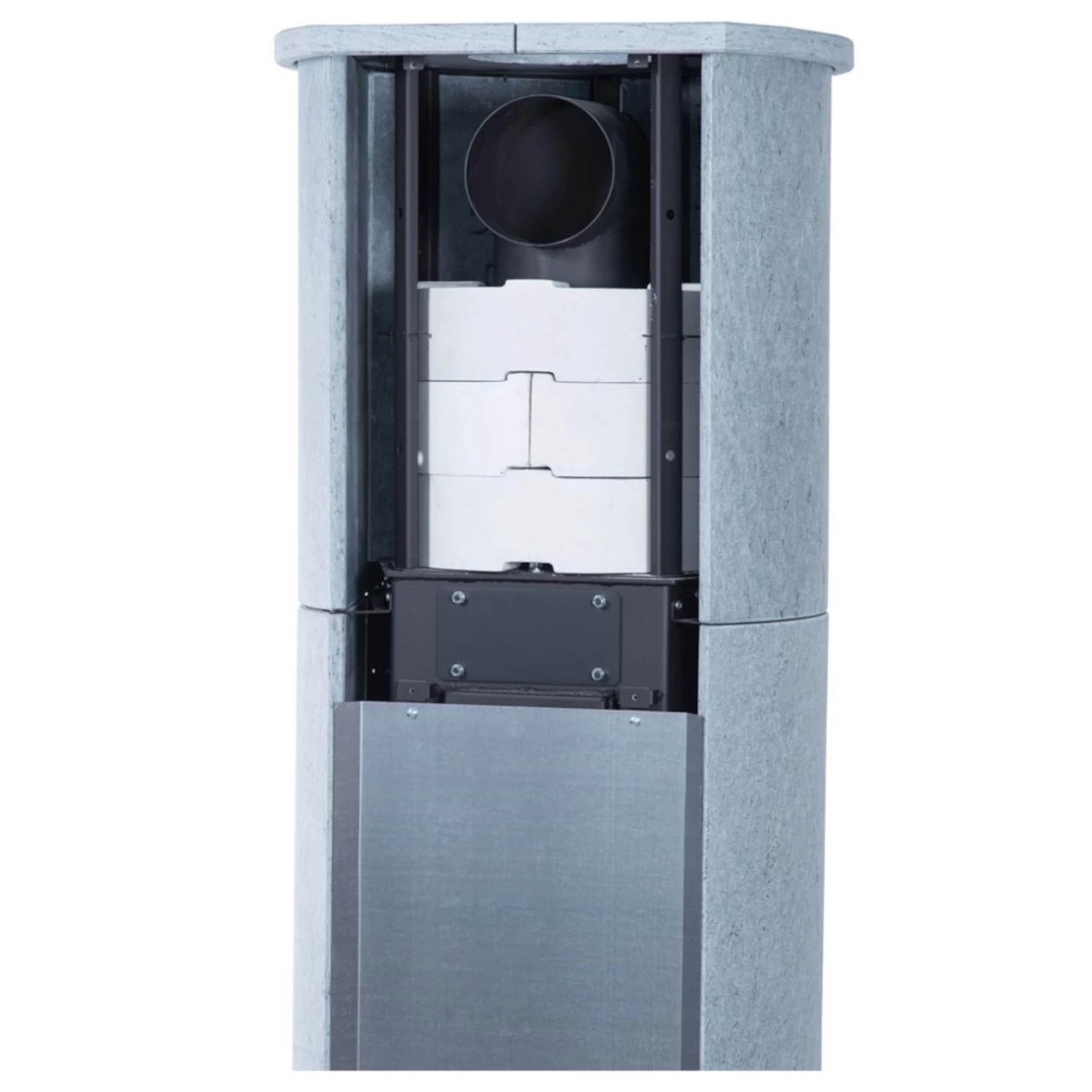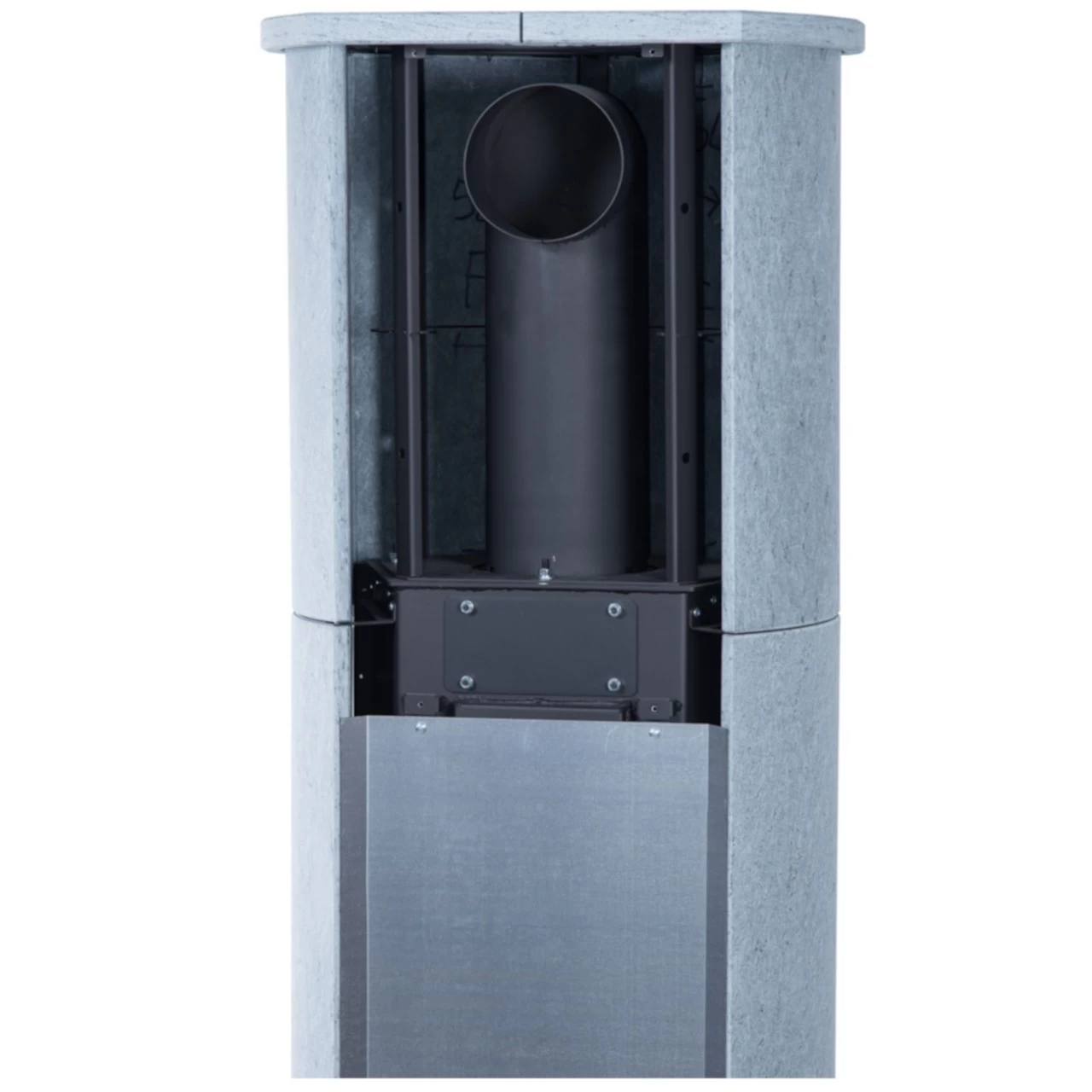Die Kaminöfen Atika/Delia/Sevilla können entweder von oben oder von hinten an den Schornstein mit Rauchrohren angeschlossen werden.
