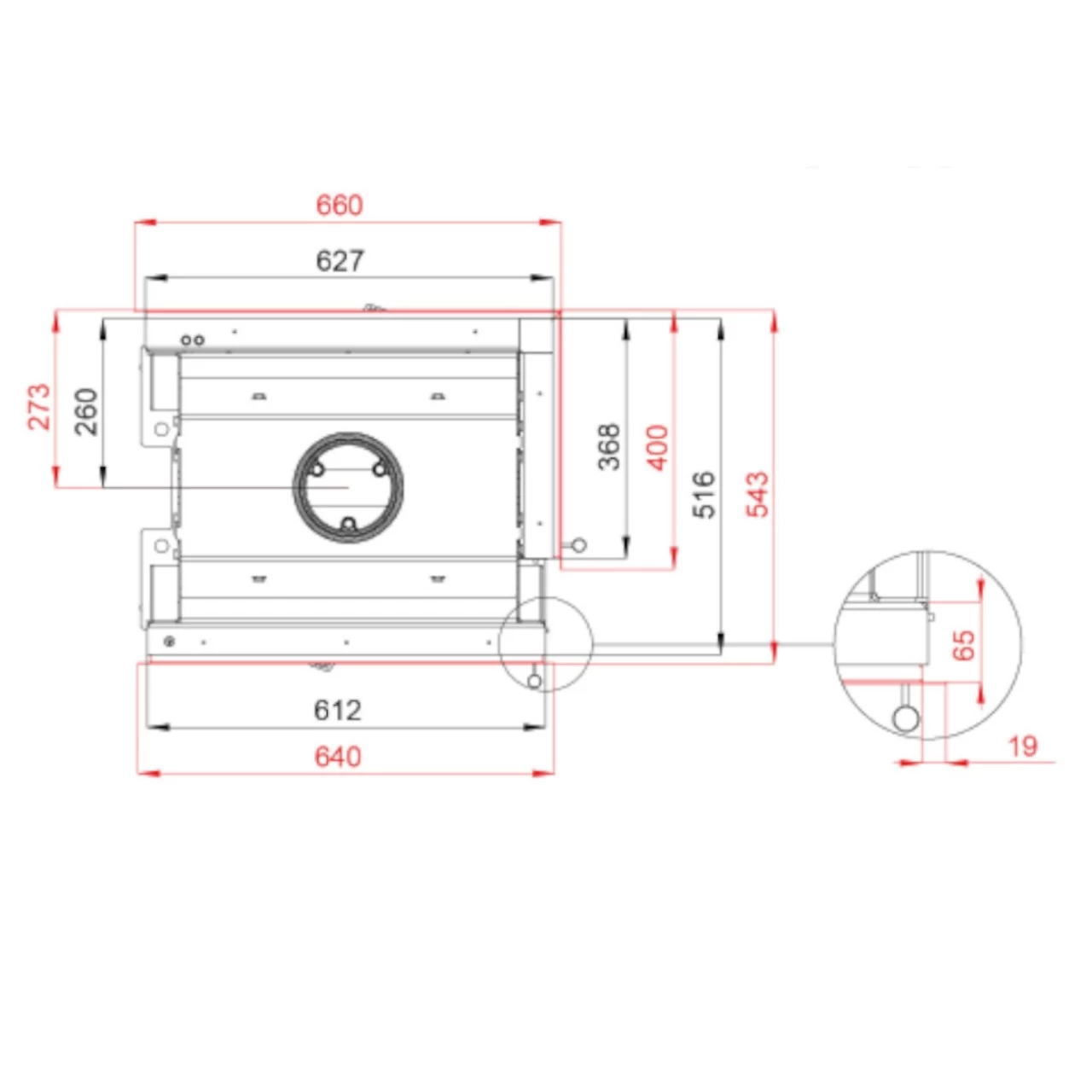 - Durchmesser Anschluss externe Luftzufuhr: 120 mm;