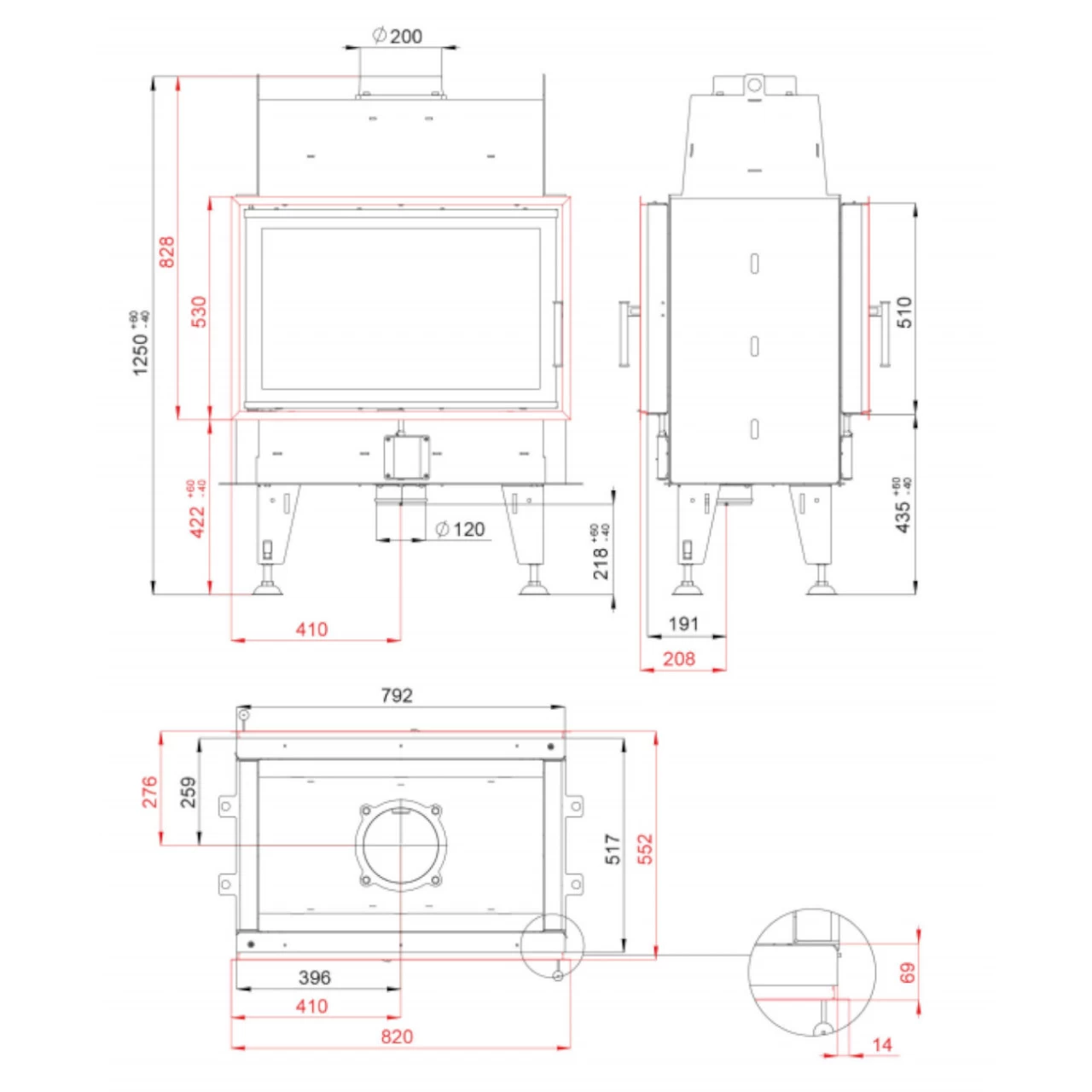 Durchmesser Rauchrohr-Anschluss: 200 mm