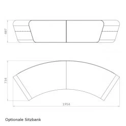 Maße optionaler Sitzbank: Höhe: 40,7 cm x Breite: 195,4 cm x Tiefe: 52,0/73,4 cm