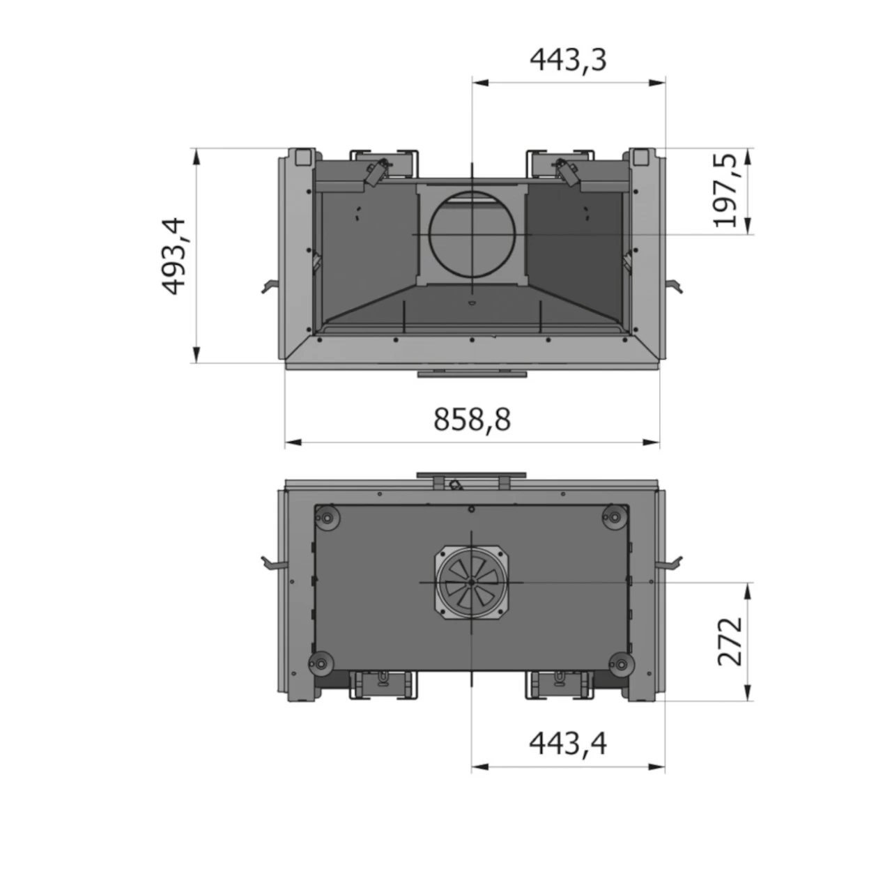 - Abstand von Mitte des Rauchstutzens bis zur Hinterkante des Ofens: 19,75 cm